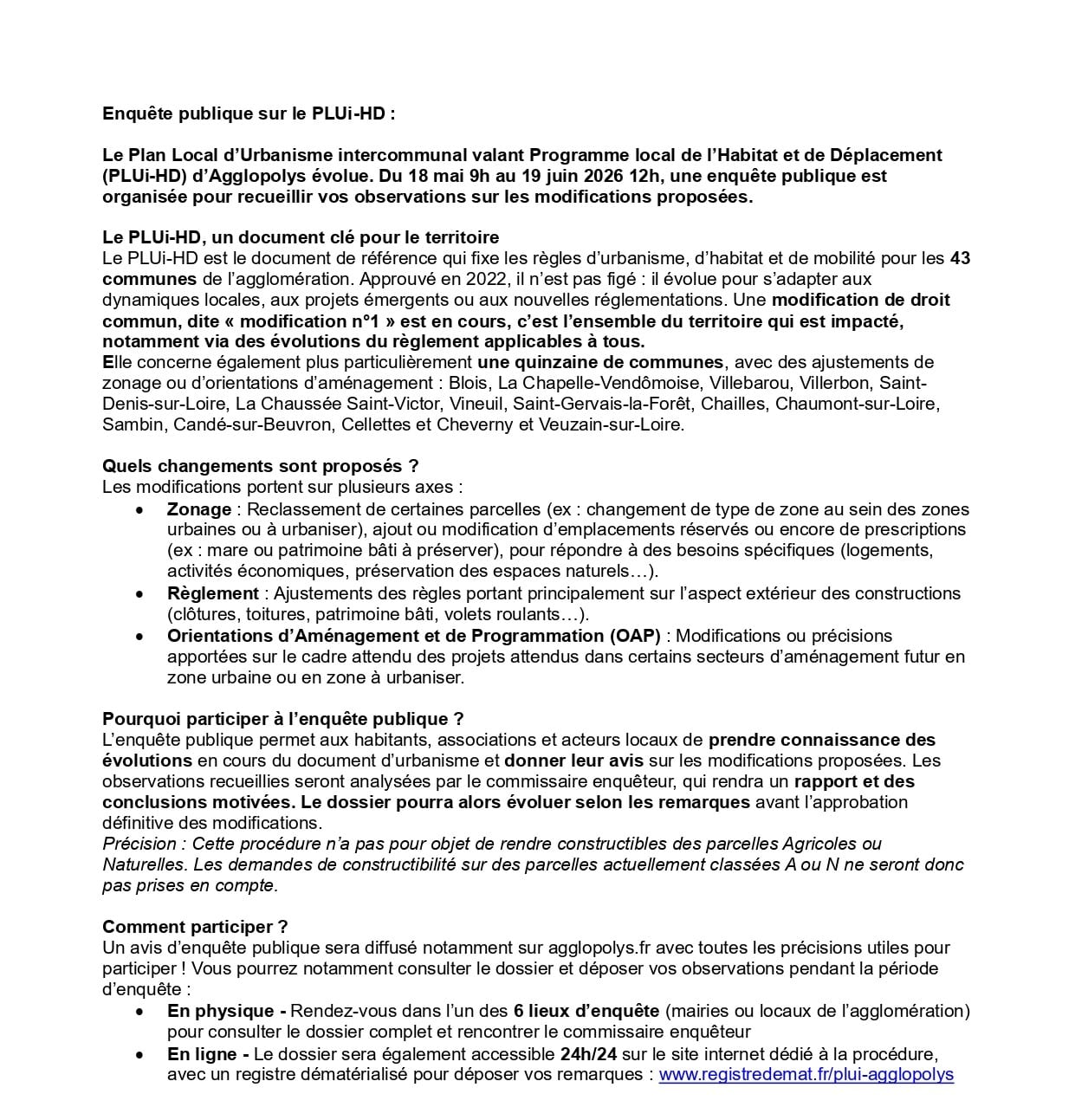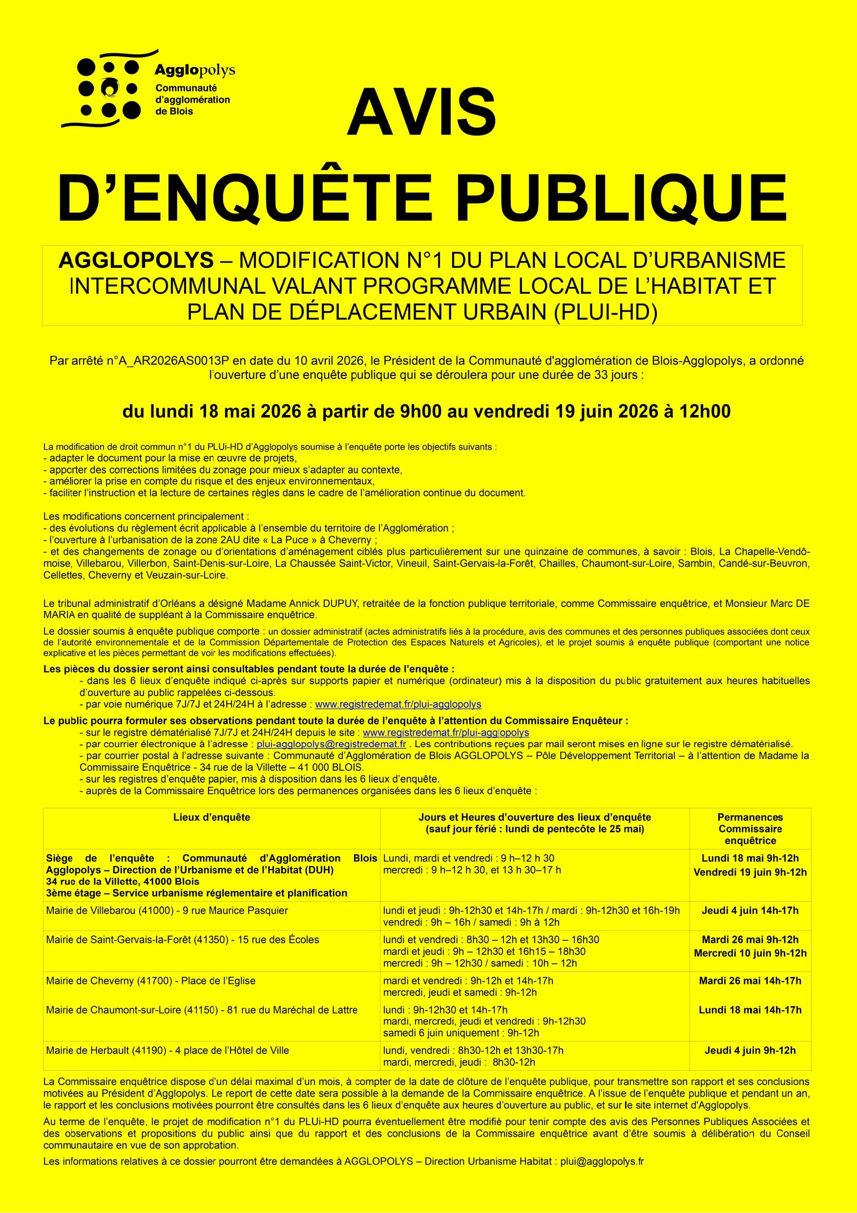 Enquête publique du 18 mai 9h au 19 juin 2026 12h.