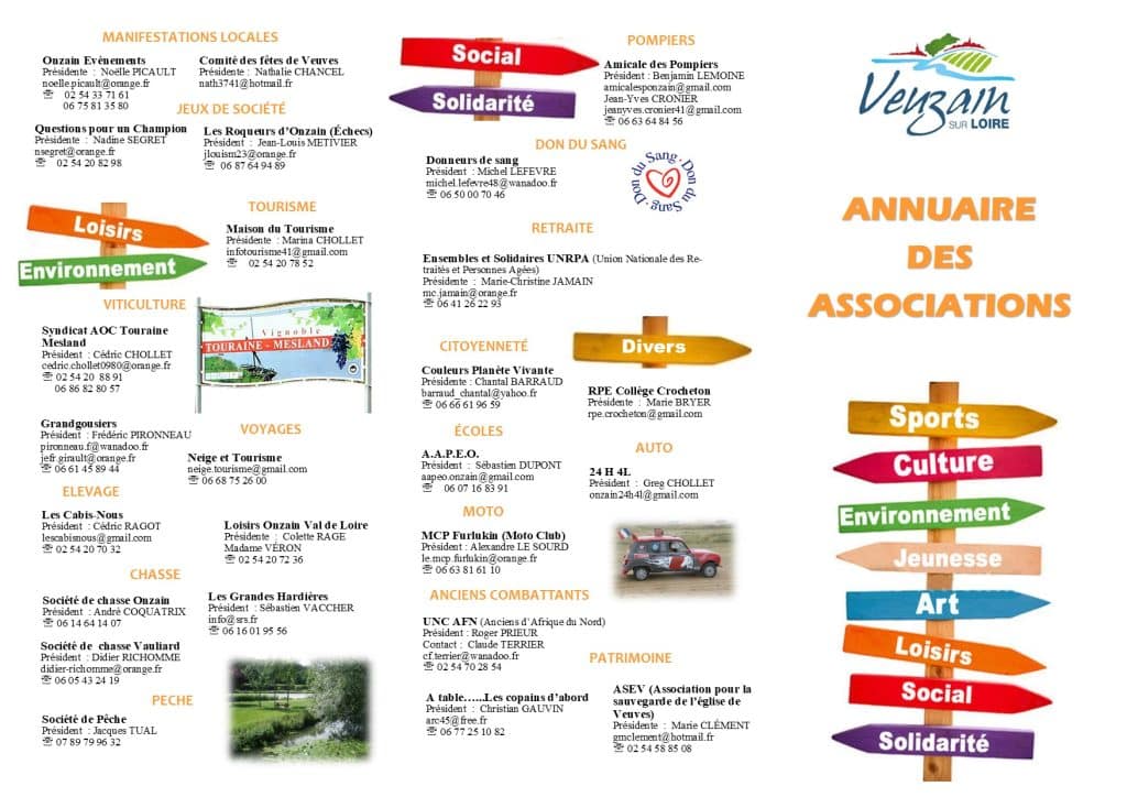 Annuaire des associations de Veuzain-sur-Loire au 3 septembre 2025 :