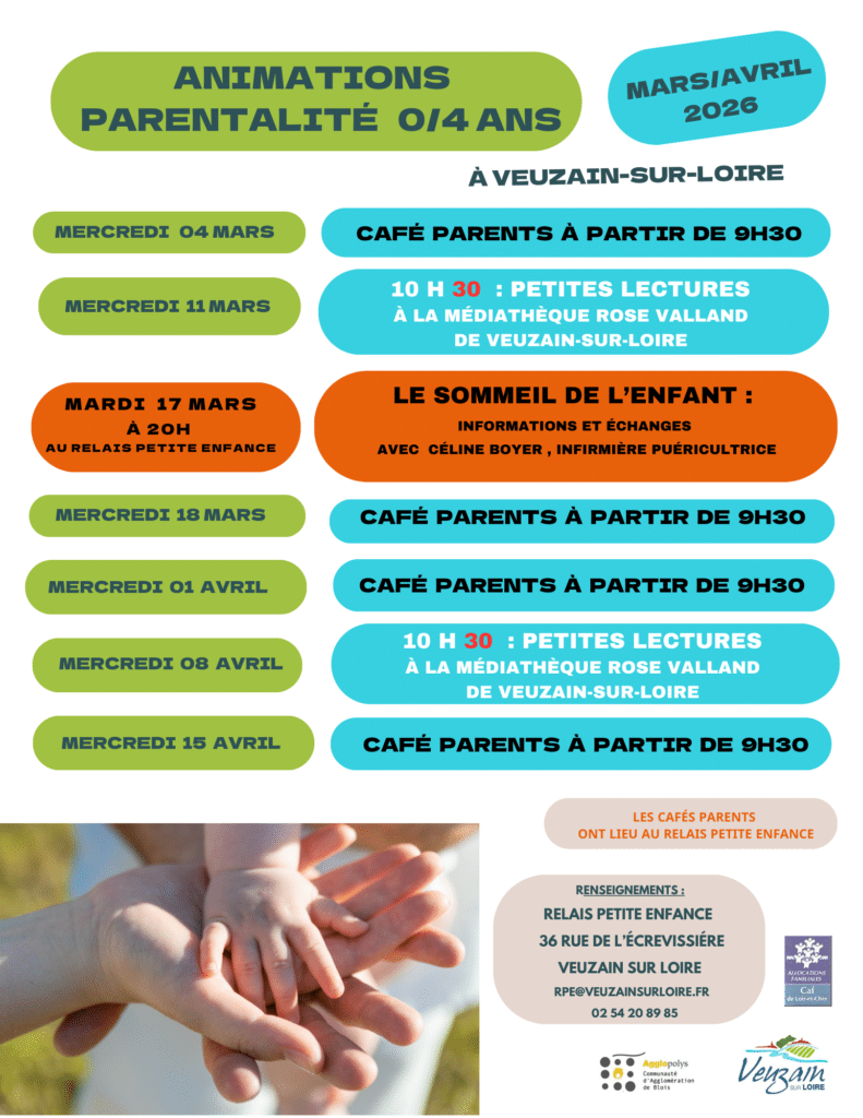 Un lieu de ressources et d’informations pour les familles et les assistants maternels, mis en place gratuitement par les communes de Veuzain-sur-Loire, Chaumont-sur-Loire, Monteaux, Mesland et Valloire-sur-Cisse et soutenu par la Caisse d’Allocations Familiales de Loir-et-Cher.