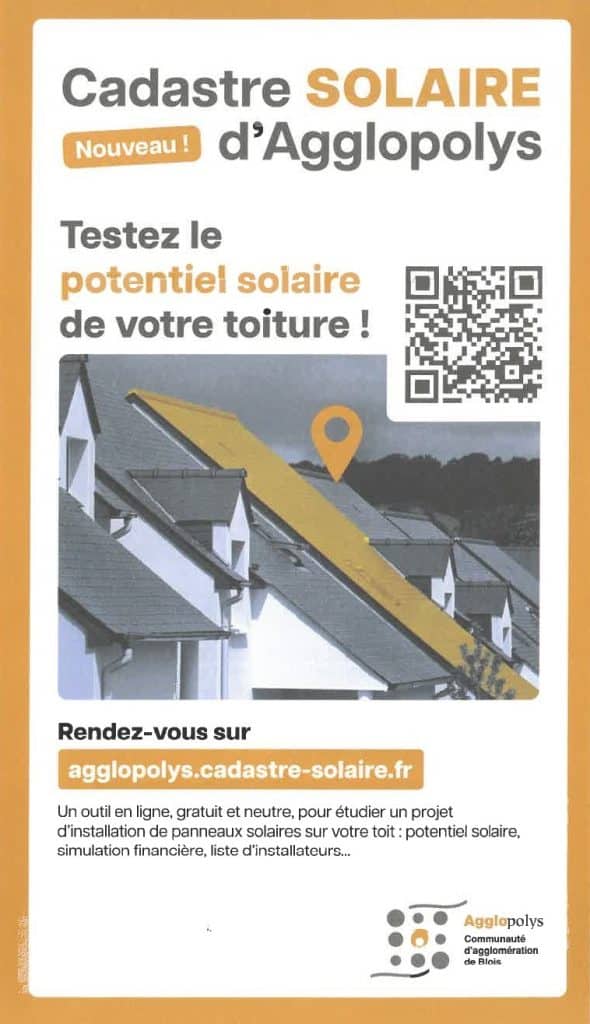 Agglopolys met à disposition de tous, particuliers, entreprises, institutions publiques, un outil gratuit et neutre, permettant en un clic de tester le potentiel solaire des toitures et parkings du territoire. Il permet d’étudier un projet d’installation de panneaux solaires photovoltaïques ou thermiques : potentiel, simulation financière (montant d’investissement, rentabilité, frais d’entretien), liste d’installateurs fiables…